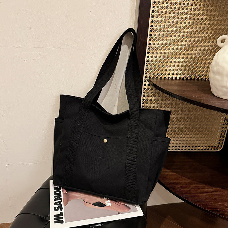 Die MJ008 ist eine moderne, praktische Canvas-Tasche in elegantem Schwarz – ideal für den täglichen Gebrauch, Ausflüge oder Freizeitaktivitäten. Mit ihren großzügigen Maßen von 41 cm Breite, 10 cm Tiefe und 33 cm Höhe bietet sie ausreichend Platz für alles, was du unterwegs benötigst.
