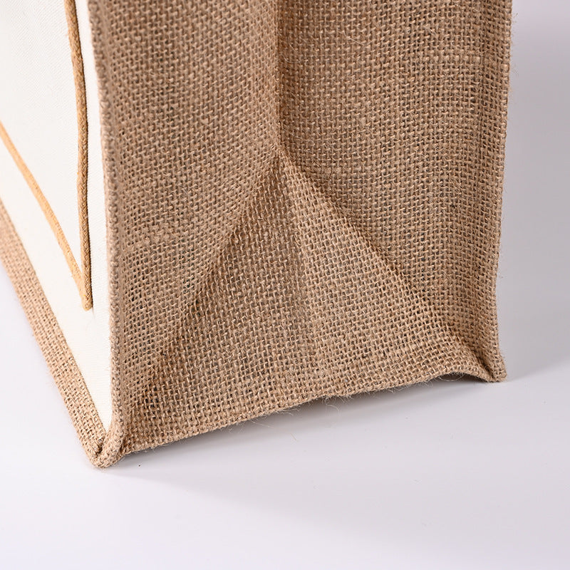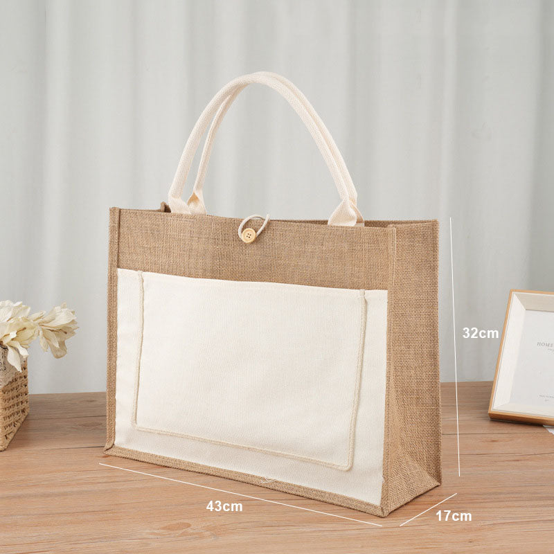 Die MJ001 ist eine elegante und zugleich robuste Tasche aus natürlicher Jute und Baumwolle, die durch ihr durchdachtes Design und ihre vielseitige Nutzbarkeit überzeugt. Mit großzügigen Maßen von 43 cm Breite, 32 cm Höhe und 17 cm Tiefe bietet sie ausreichend Platz für Unterlagen, persönliche Gegenstände und mehr.