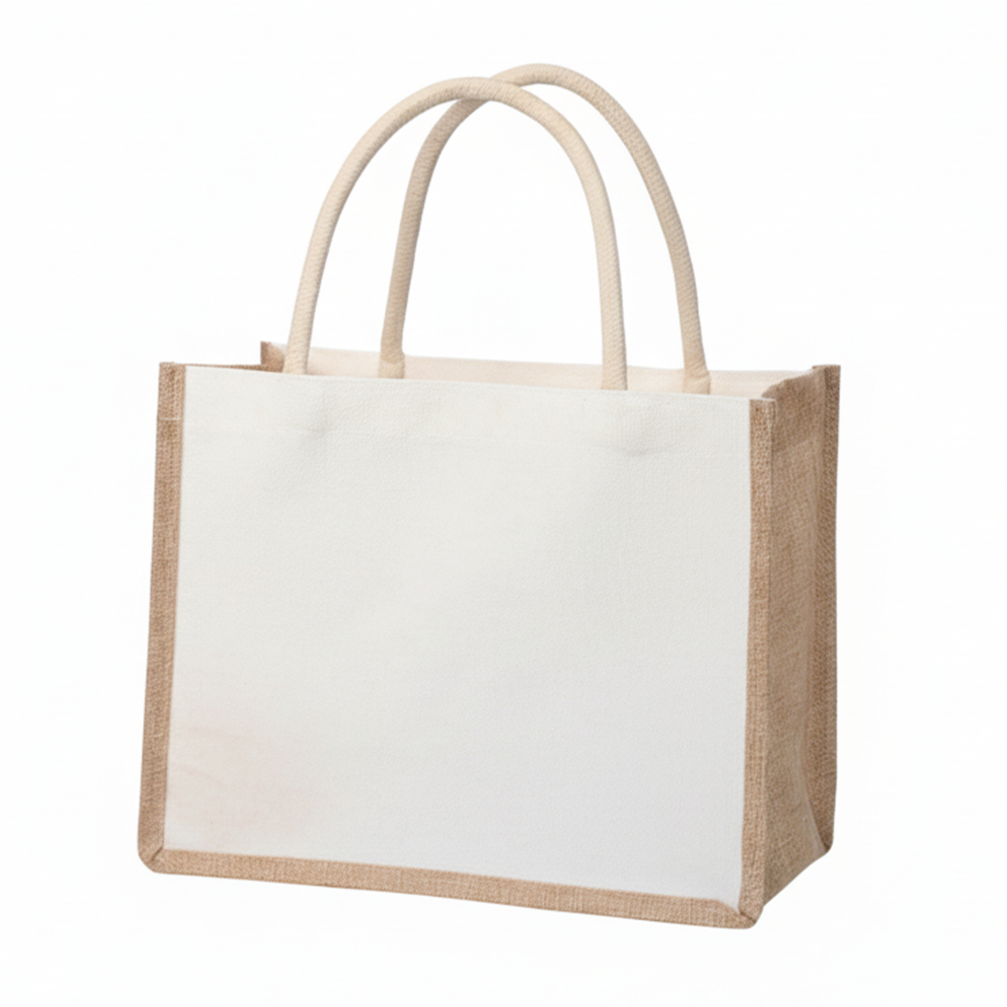 Eine Umrandung aus natürlicher Jute verleiht der Tasche einen rustikal-eleganten Charakter.