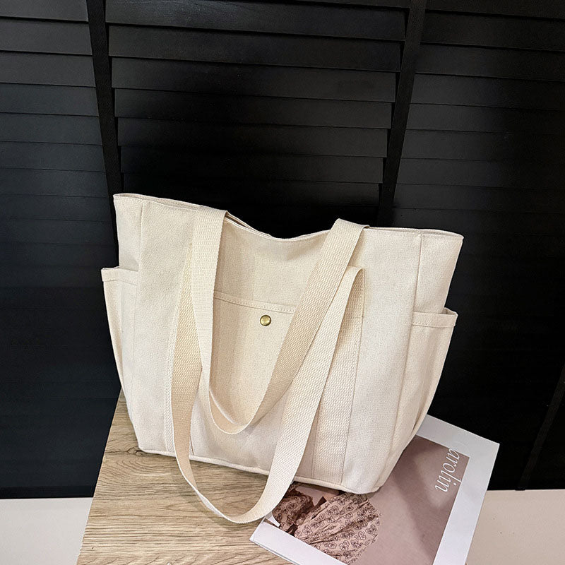 Die MJ009 ist eine moderne, praktische Canvas-Tasche in elegantem Creme – ideal für den täglichen Gebrauch, Ausflüge oder Freizeitaktivitäten. Mit ihren großzügigen Maßen von 41 cm Breite, 10 cm Tiefe und 33 cm Höhe bietet sie ausreichend Platz für alles, was du unterwegs benötigst.